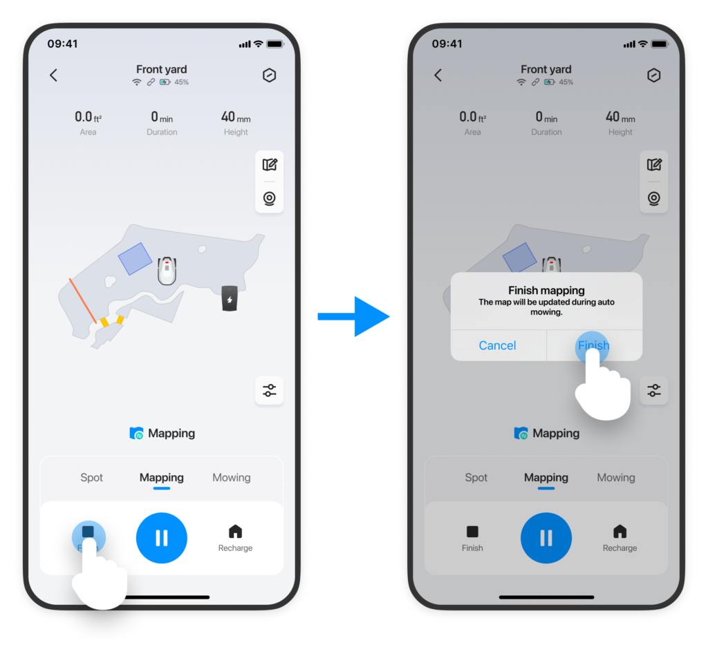 Jeśli Twój trawnik ulegnie zmianie, po prostu uruchom automatyczne koszenie, a mapa zaktualizuje się automatycznie.