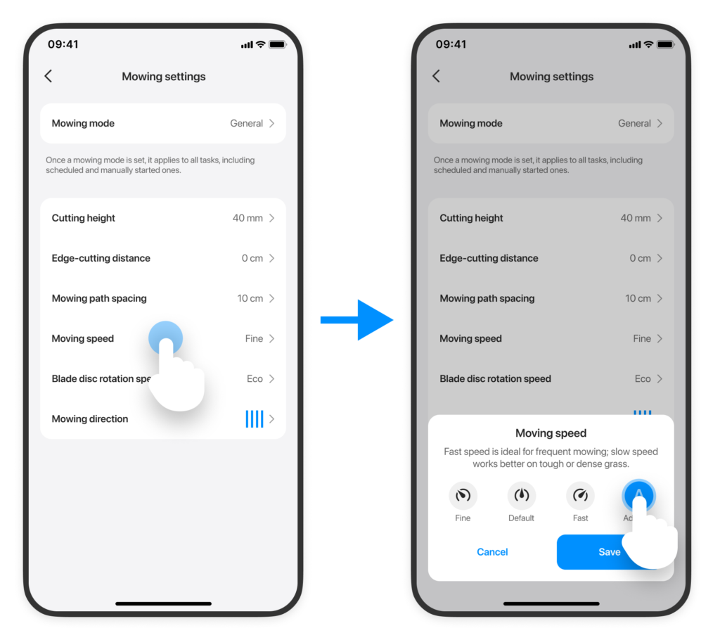 Nowy tryb Adaptive Speed ​​automatycznie zwalnia kosiarkę w przypadku gęstej trawy, co zapewnia płynniejszą pracę i czystsze rezultaty.
