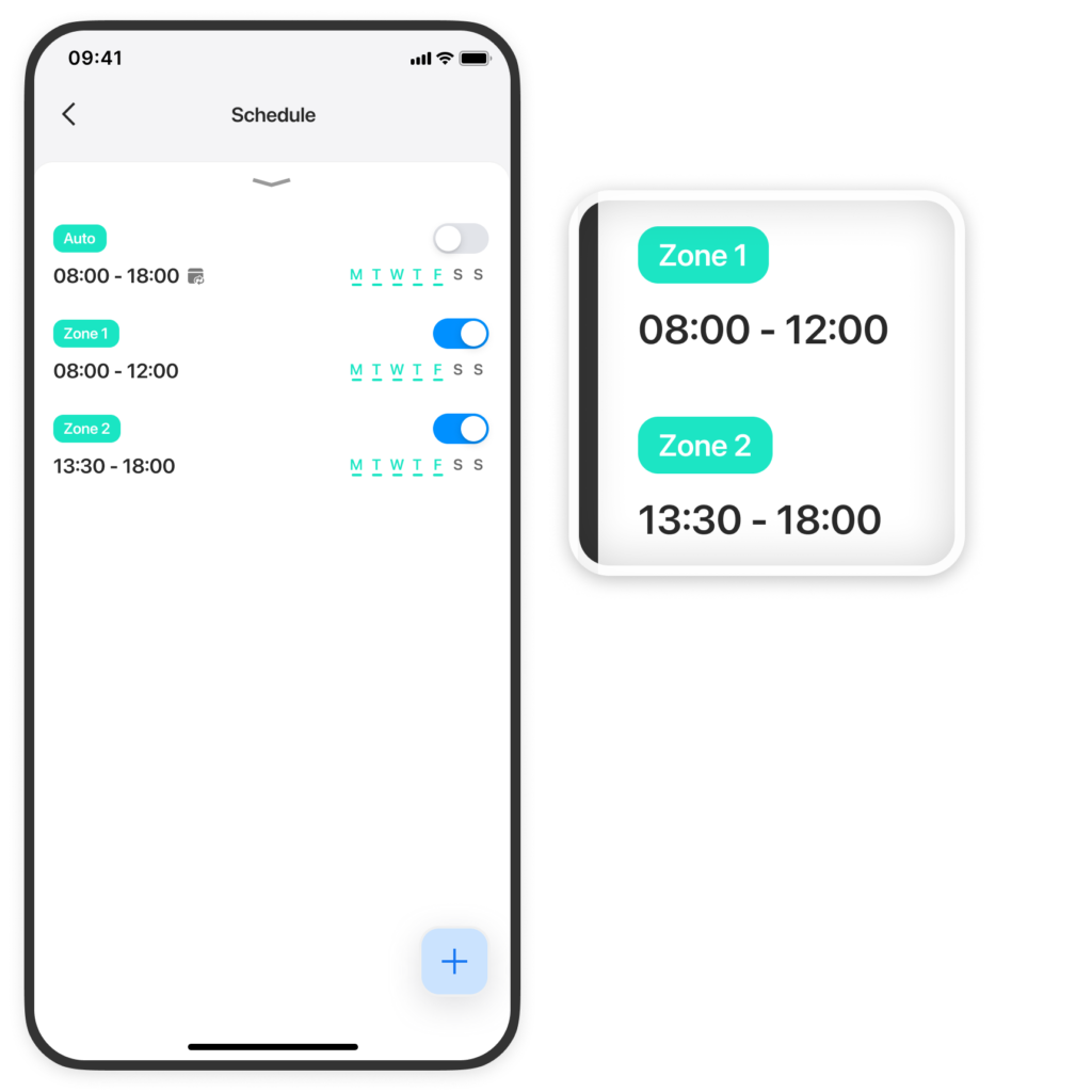 • Zadania oparte na strefach wyświetlają nazwę wybranego obszaru bezpośrednio na liście.